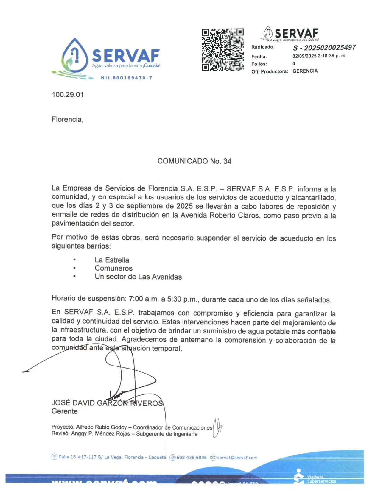 Suspensión del servicio de acueducto