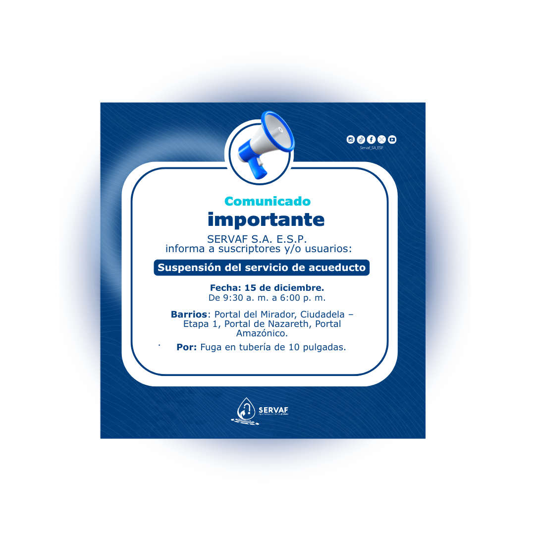 SUSPENSIÓN TEMPORAL DEL SERVICIO DE ACUEDUCTO FLORENCIA – CAQUETÁ