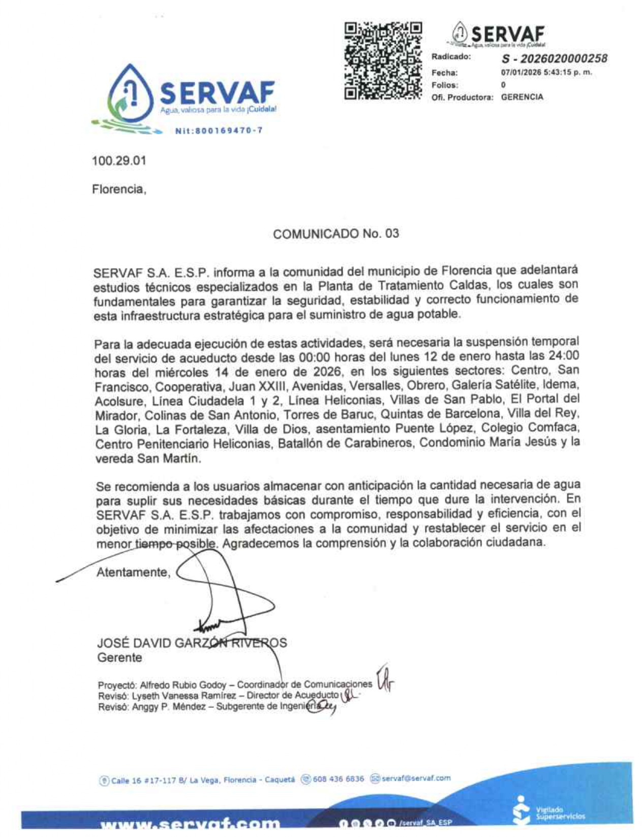 Suspensión del servicio de acueducto